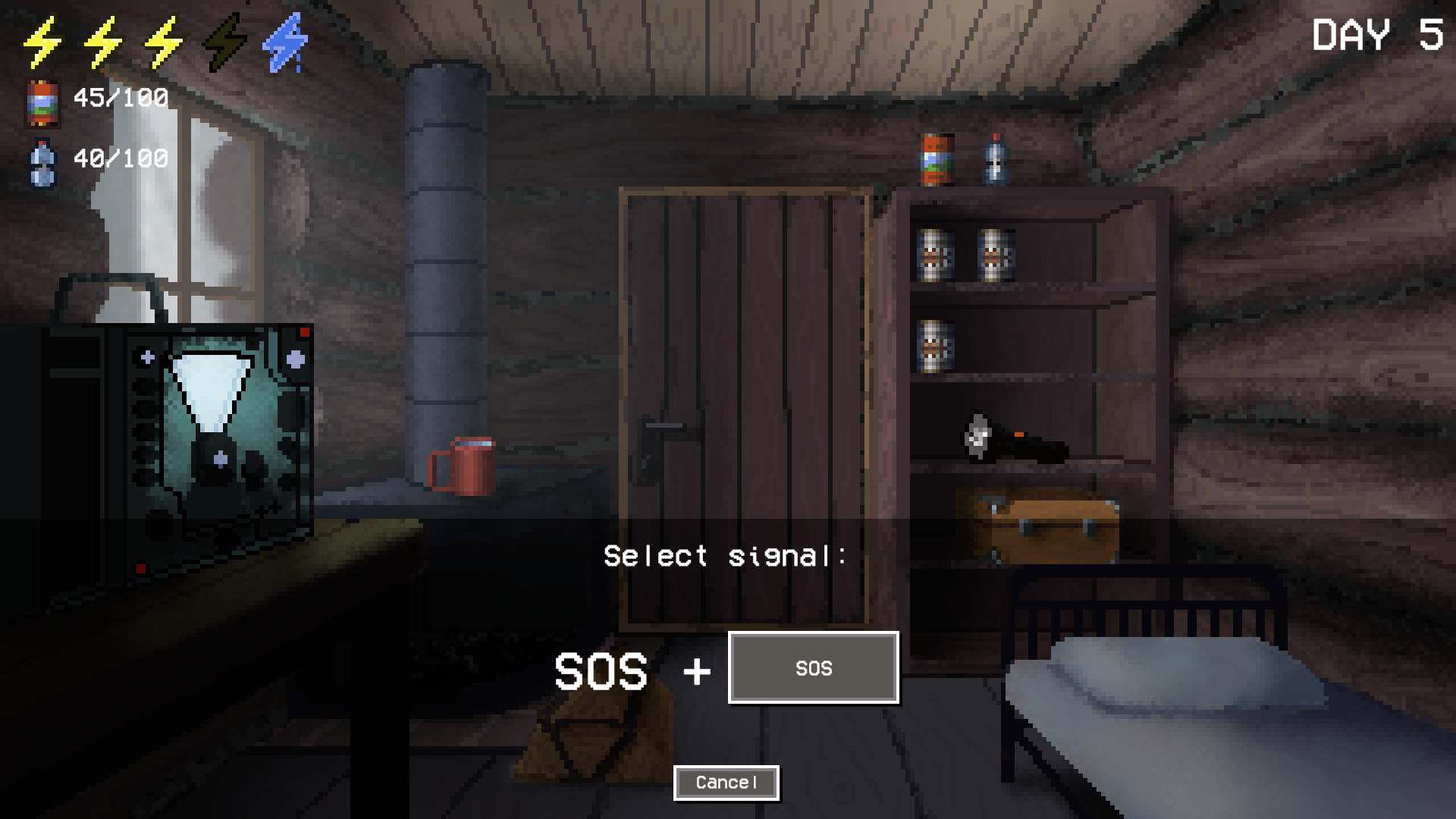 - Survive the cold: gather firewood, melt snow, and keep the stove burning through nights and snowstorm.